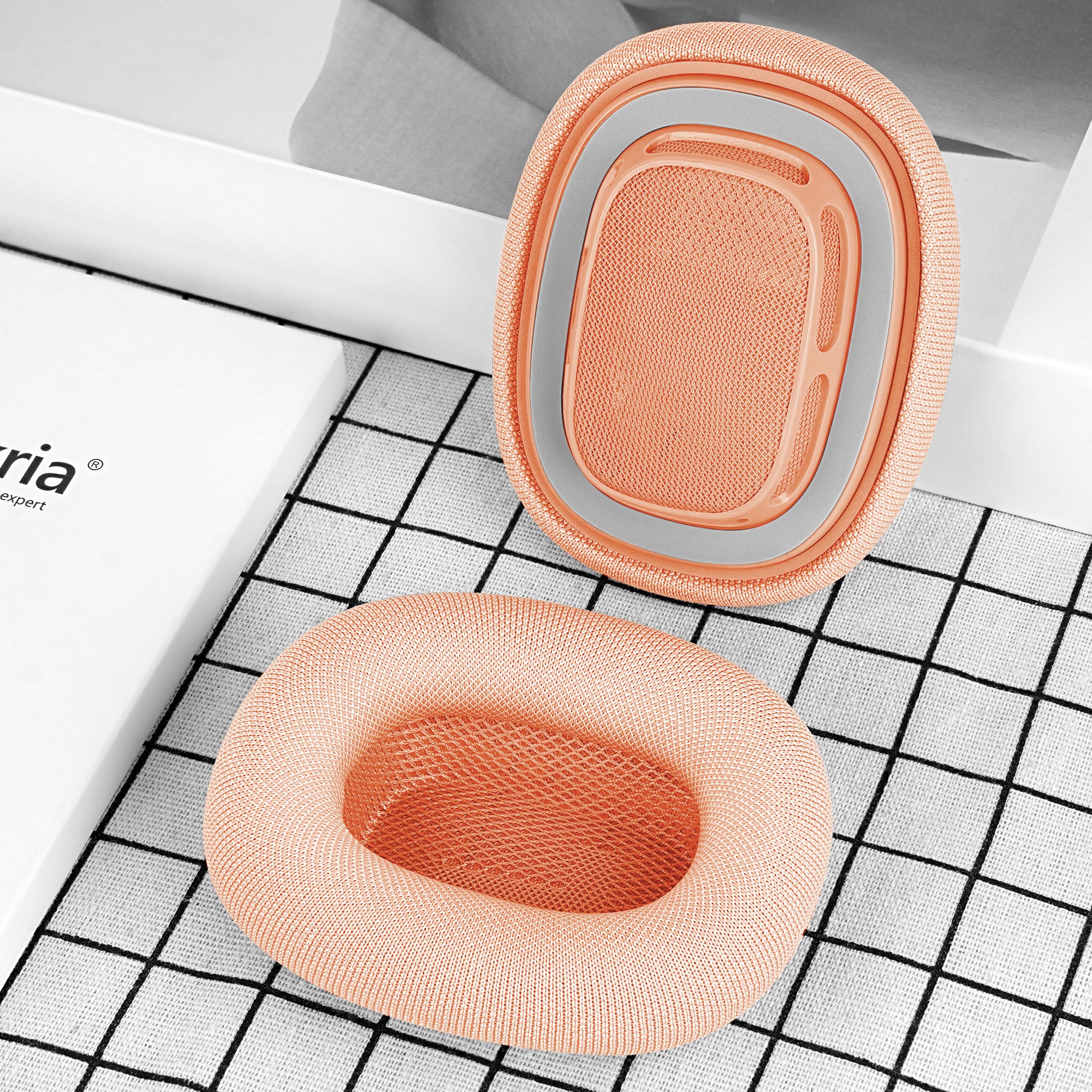 Geekria Comfort Mesh Fabric Replacement Ear Pads Compatible with AirPods MAX (A2096), AirPodsMAX2 (A3184) Headphones, Ear Cushions (Orange)