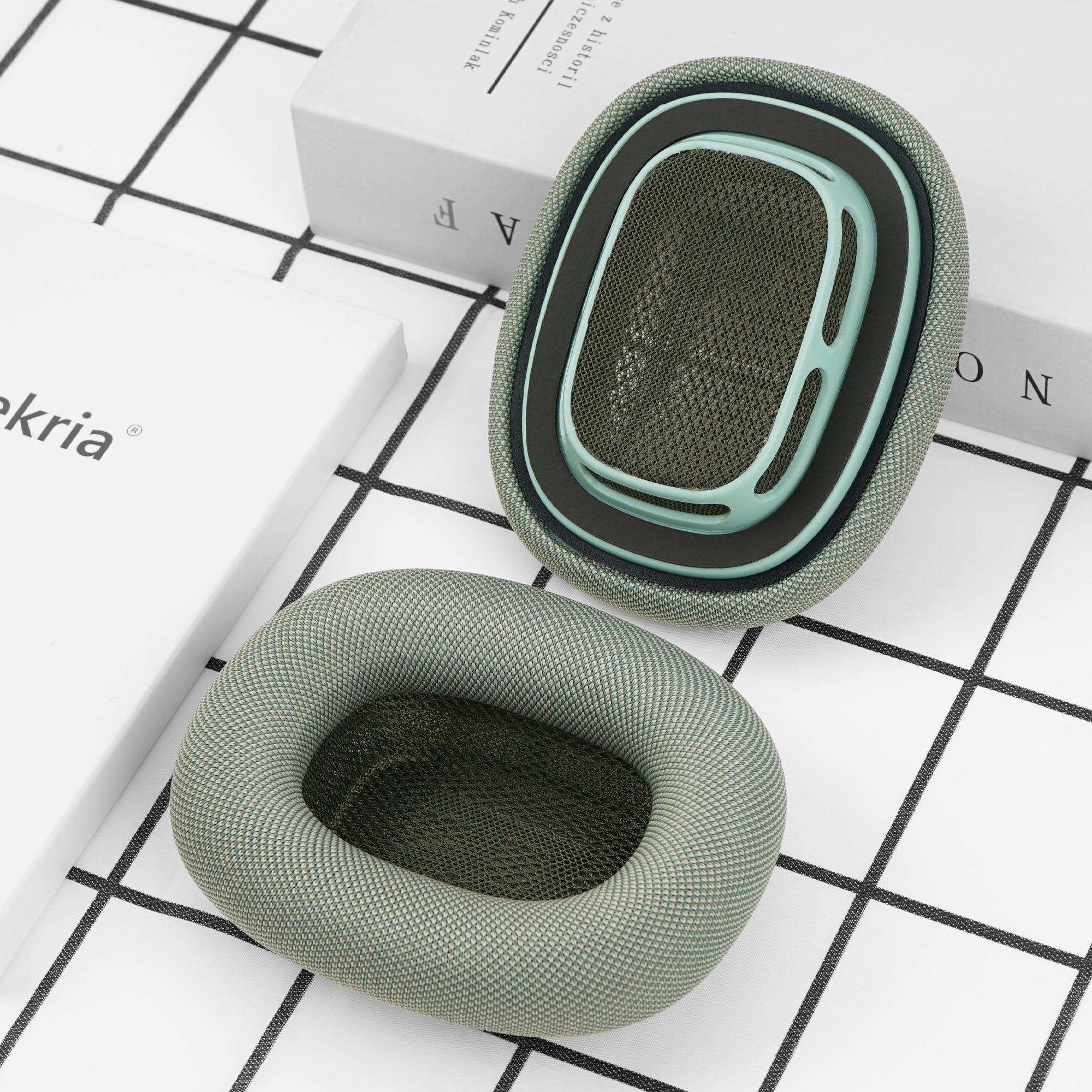 Geekria Comfort Mesh Fabric Replacement Ear Pads Compatible with Apple AirPods MAX (A2096), AirPods MAX2 (A3184) Headphones, Ear Cushions (Green)