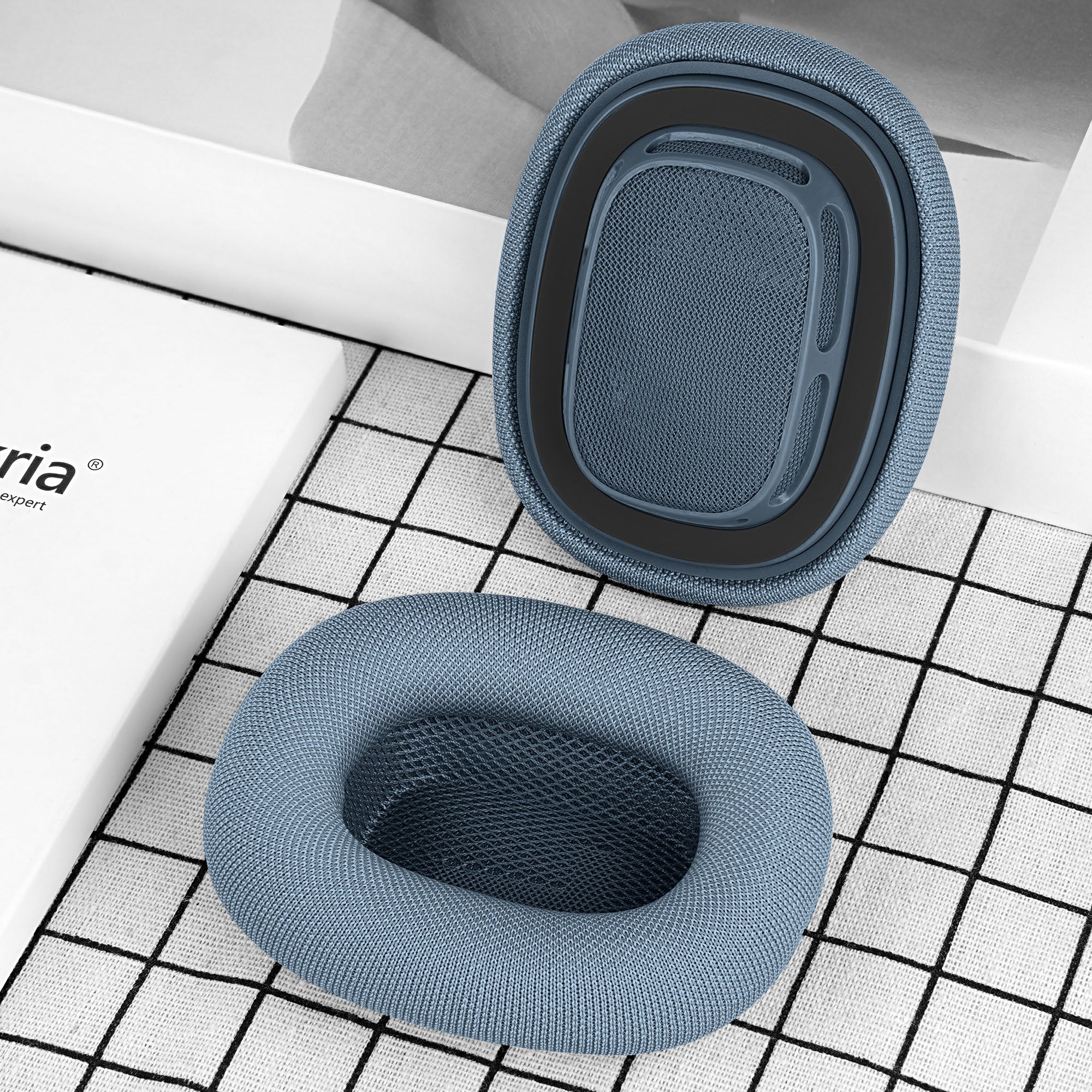 Geekria Comfort Mesh Fabric Replacement Ear Pads Compatible with Apple AirPods MAX (A2096), AirPodsMAX2 (A3184) Headphones, Ear Cushions (Blue)