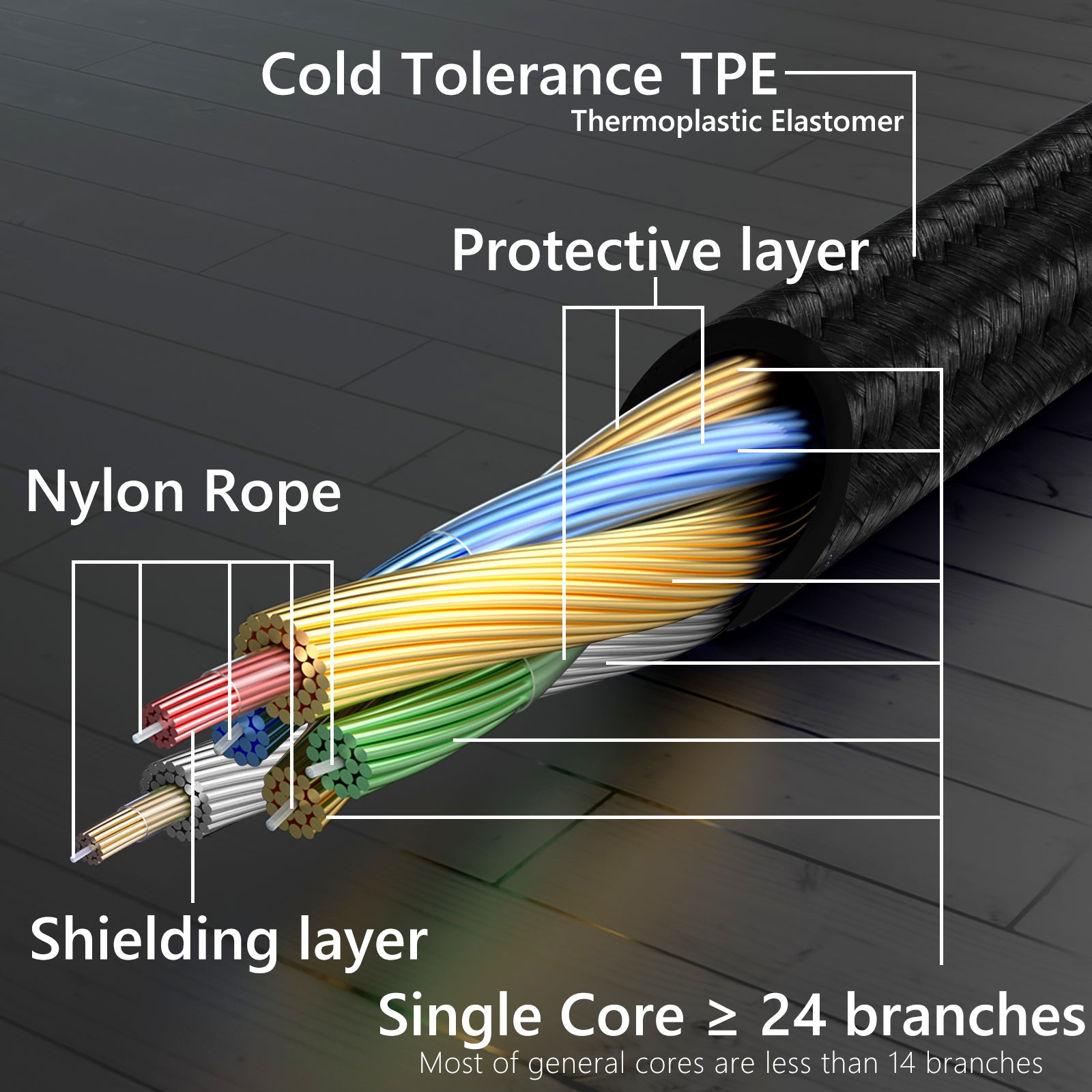 • Thermoplastic Elastomer (TPE) and rugged, engineered Polypropylene Yarn ensure the superior audio transfer against electron magnetic or radio interference (EMI or RFI), extreme cold or hot temperature and maximum protection.