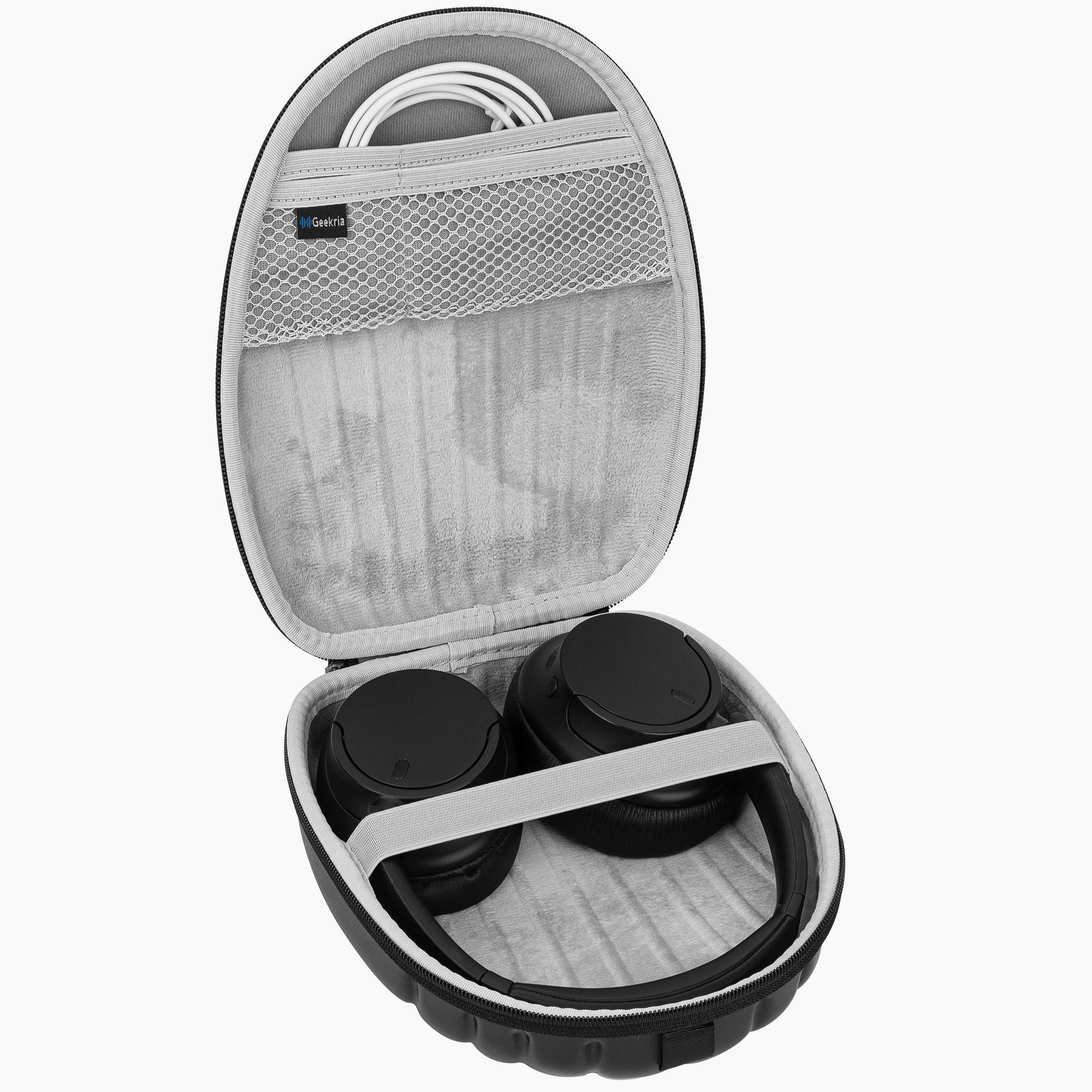 Geekria Shield Case Compatible with Sony WH-CH720N, WH-1000XM6, WH-1000XM5, WH-ULT900N Headphones, Replacement Protective Hard Shell Travel Carrying Bag with Cable Storage (SeaShell Black)