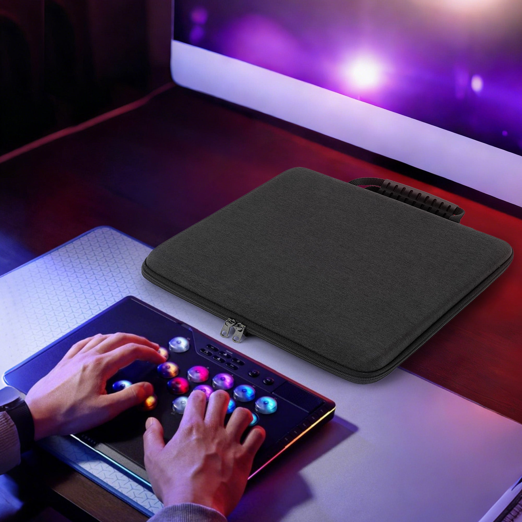 Geekria Hard Shell Travel Case Compatible with Corsair NOVABLADE PRO, Arcade Controller Carrying Bag (Dark Grey)