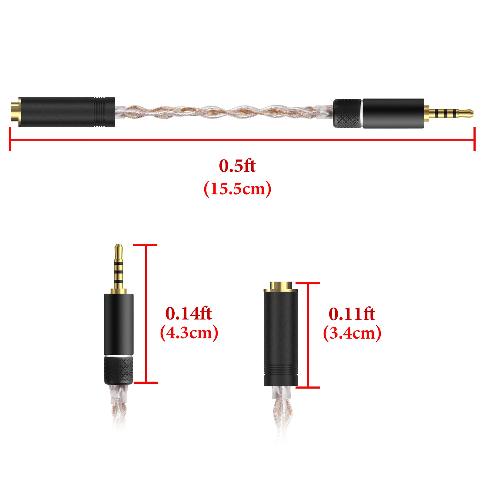 - Each core with 19 strands copper wire, Mix the Single crystal copper (OCC) and the Single-crystal silver, with 2.5mm male and 4.4mm female gold-plated plug.