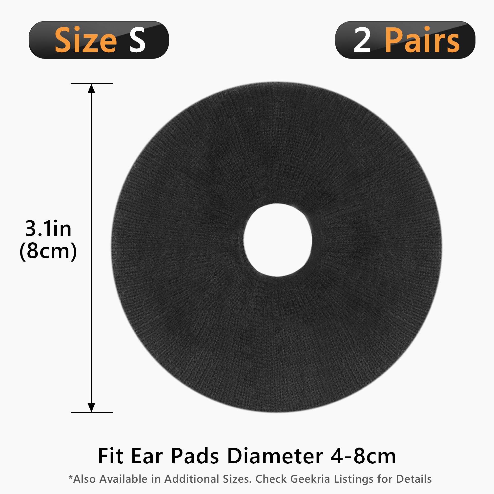 Geekria 2 Pairs Knit Headphones Ear Covers - Product Safety Certified - Washable & Stretchable Sanitary Earcup Protectors for On-Ear Headsets, Sweat Pads for Gym, Meeting (Size S / Black)