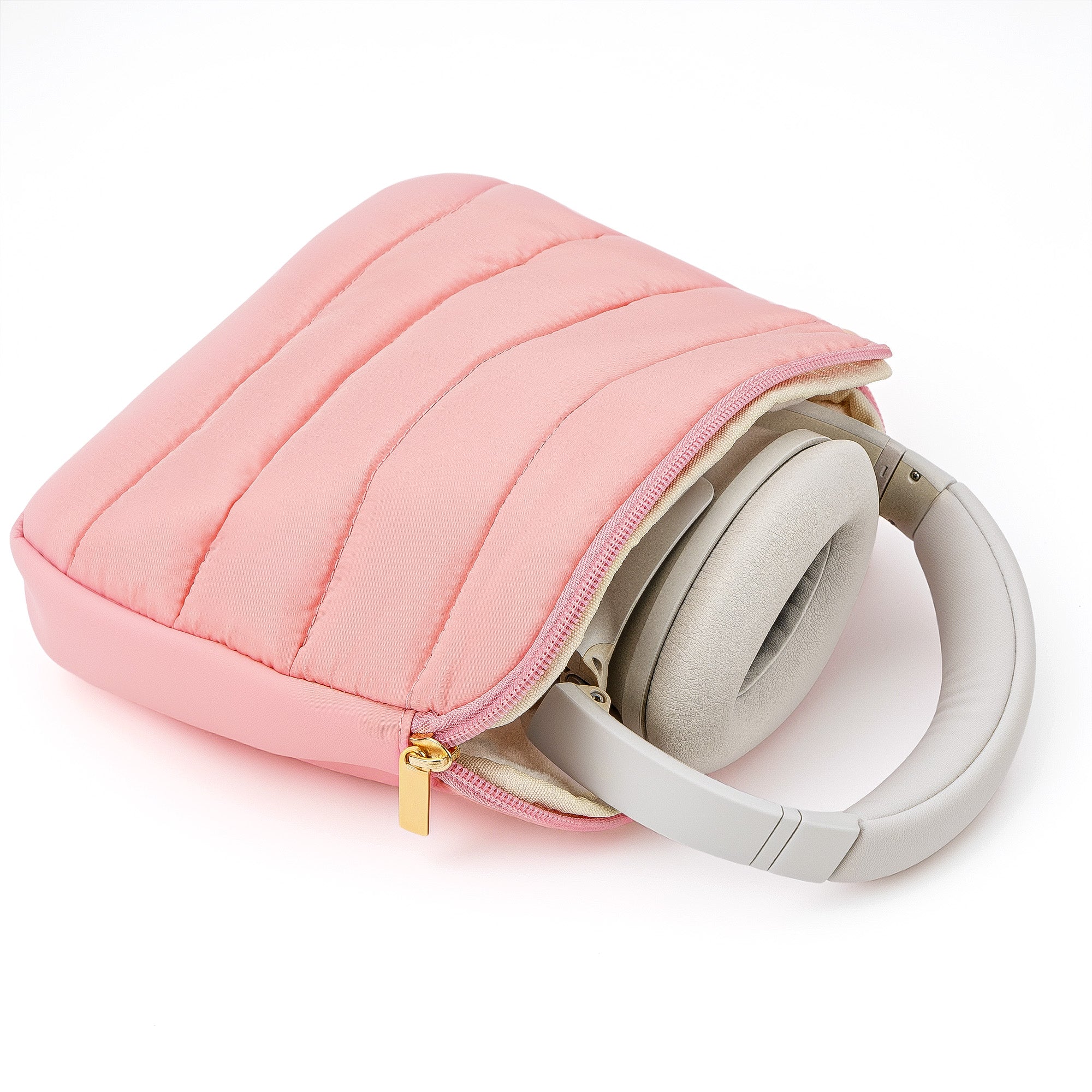 Geekria NOVA Headphones Puffy Pouch Compatible with JBL Tour One M3, Bose QC Ultra II, Sennheiser PXC 550-II, Soft Shell Replacement Protective Travel Carrying Bag with Cable Storage (Pink)