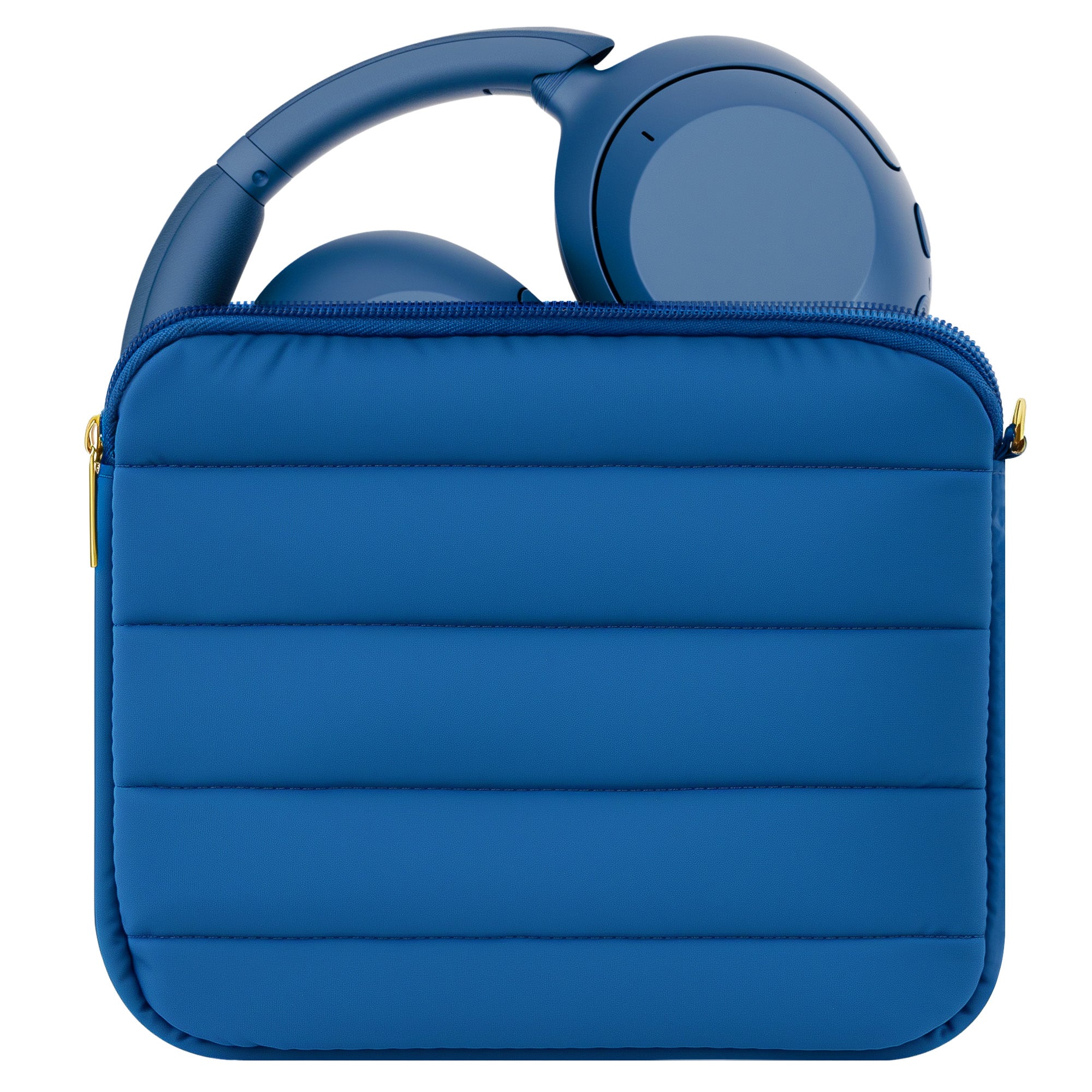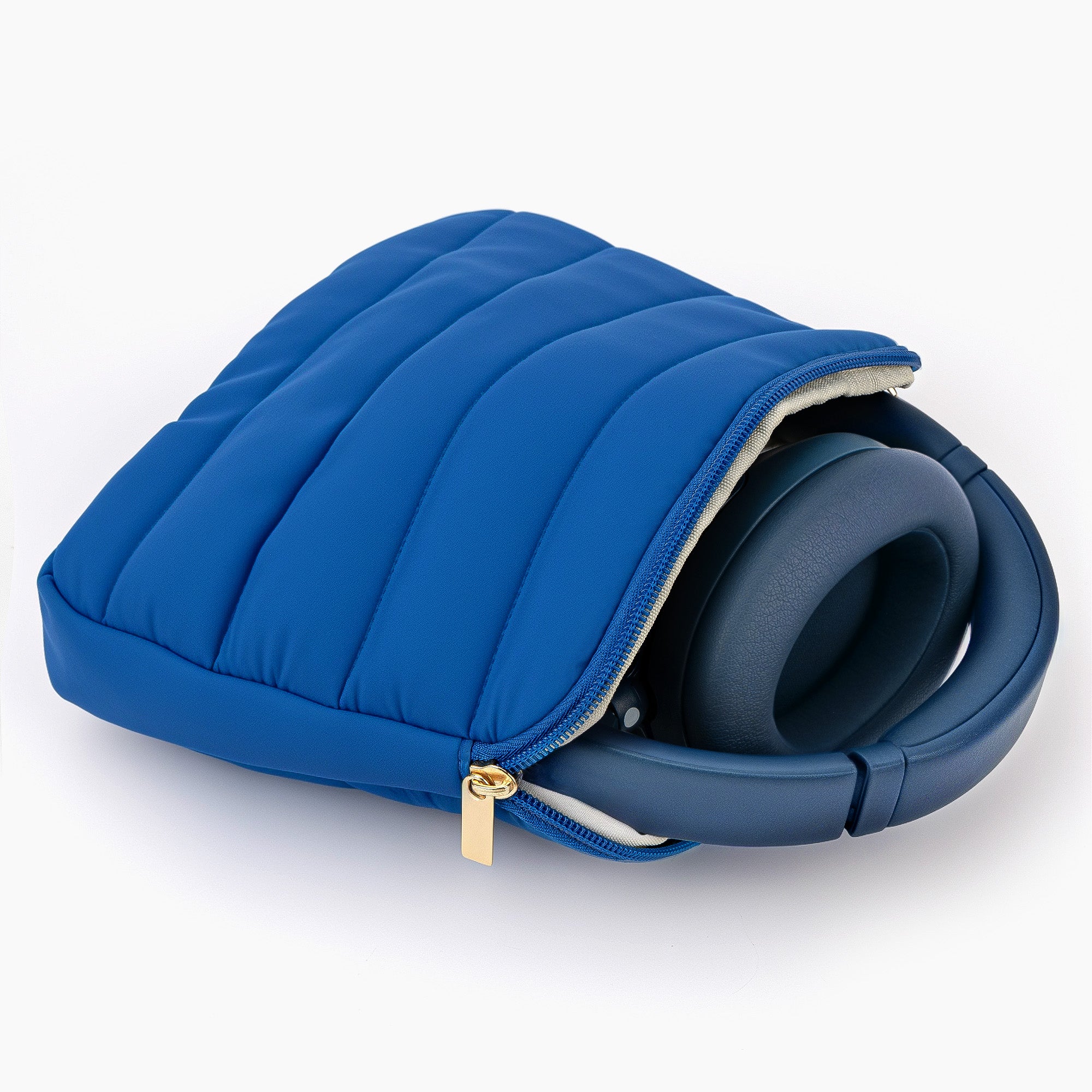 Geekria NOVA Headphones Puffy Pouch Compatible with JBL Tour One M3, Sennheiser PXC 550-II, Bose QC Ultra II, Soft Shell Replacement Protective Travel Carrying Bag with Cable Storage (Blue)