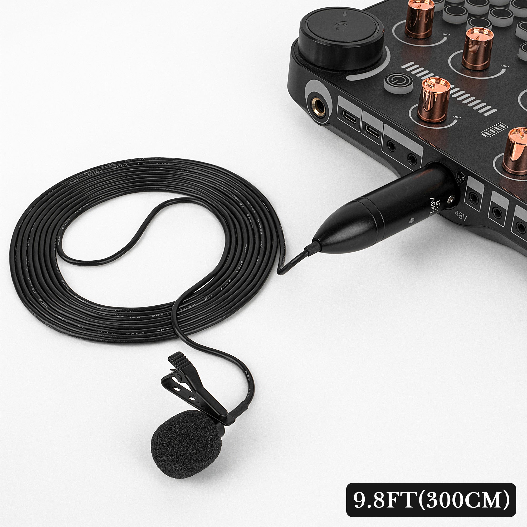Geekria 48V XLR Lavalier Microphone, Omnidirectional Mic, HD Noise Reduction, Compatible with FIFINE SC3, MAONO G1 NEO Gaming Audio Mixer, Suitable for Camcorders, Recorder (Black / 9.8 FT)