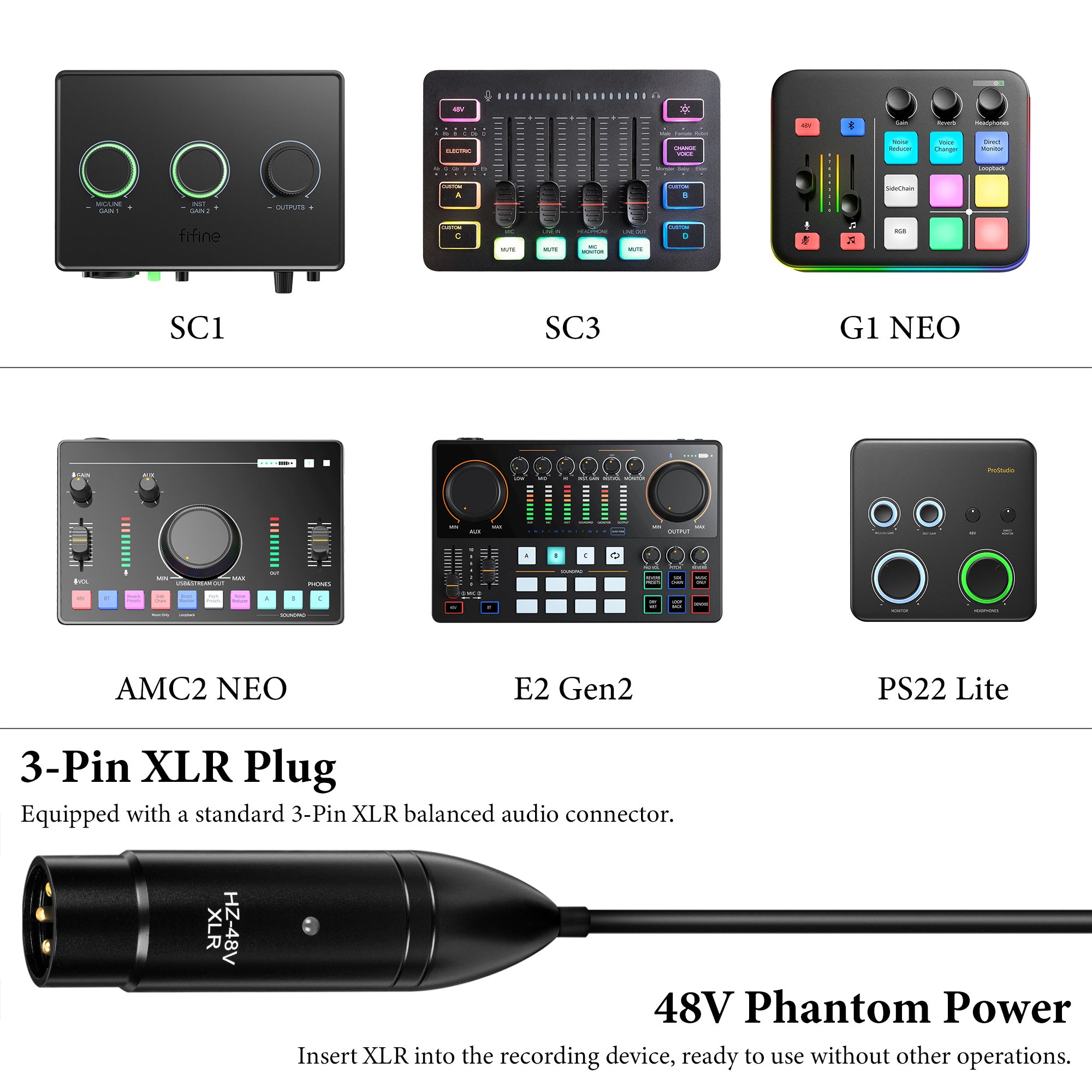 - Compatible with FIFINE SC3, MAONO G1 NEO gaming audio mixer, and other equipment such as camcorders, recorders, sound cards, mixers.