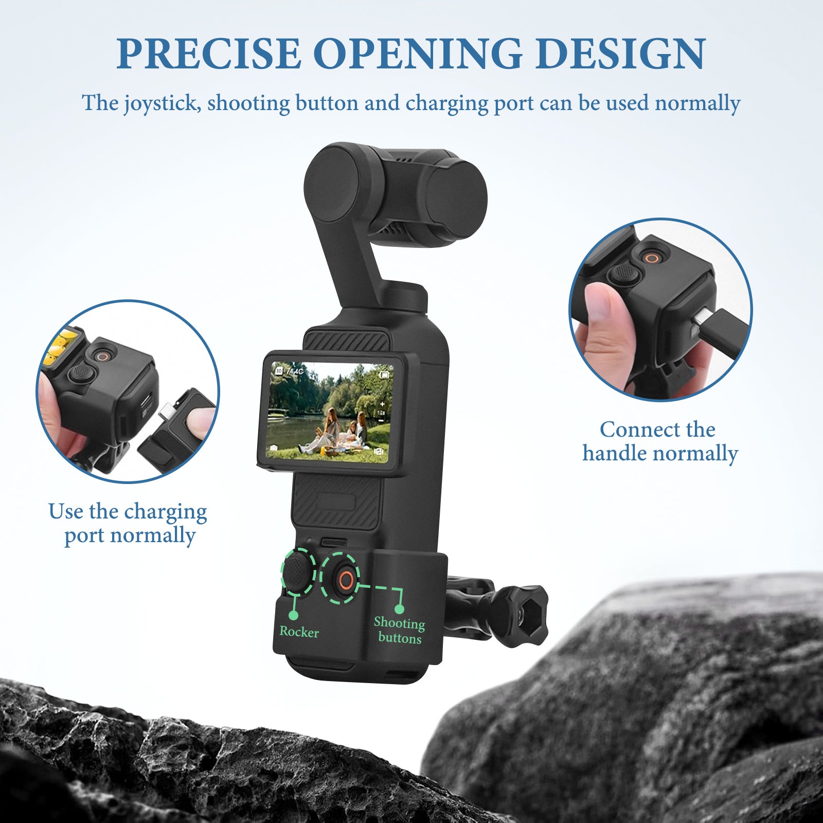 - This multi-function conversion frame is designed for DJI Osmo Pocket 3 action cameras, made of high-quality materials, built-in non-slip sponge pad, compatible with various photography accessories, is Ideal for photographers, content creators, and travelers.