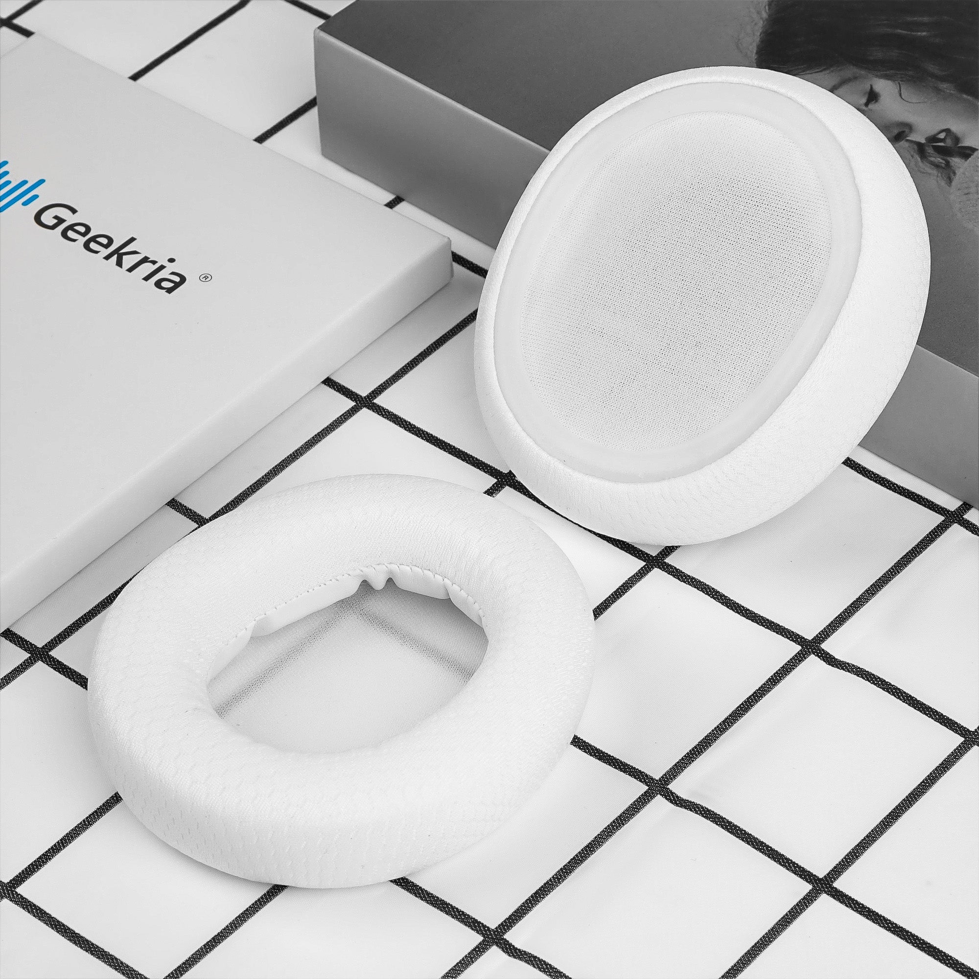 Geekria Comfort Mesh Fabric Replacement Ear Pads for SteelSeries Arctis Nova Pro Wired, Arctis Nova 1/ 3/ 4/ 5/ 7 Headphones Ear Cushions, Repair Parts (White)