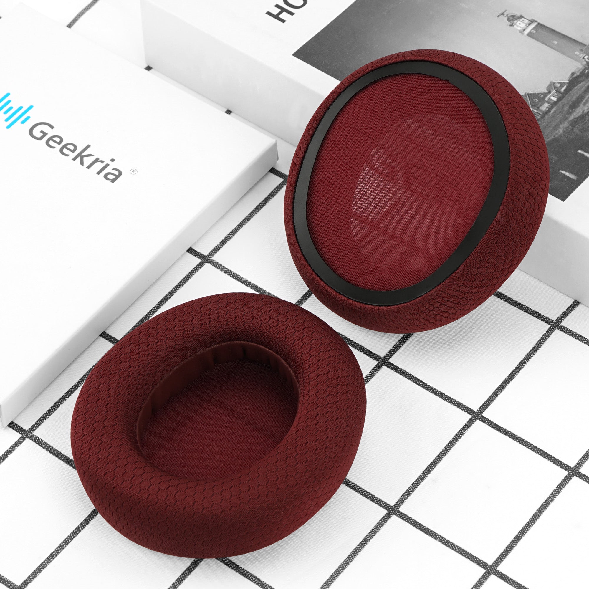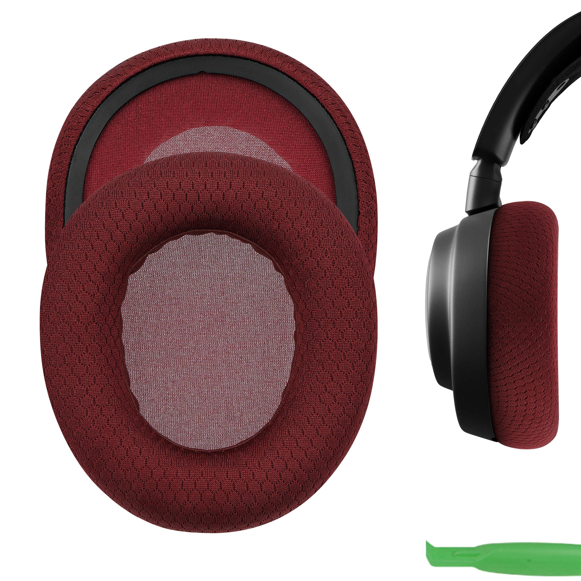 Geekria Comfort Mesh Fabric Replacement Ear Pads for SteelSeries Arctis Nova Pro Wired, Arctis Nova1, Nova3, Nova4, Nova5, Nova7 Headphones Ear Cushions (Red)