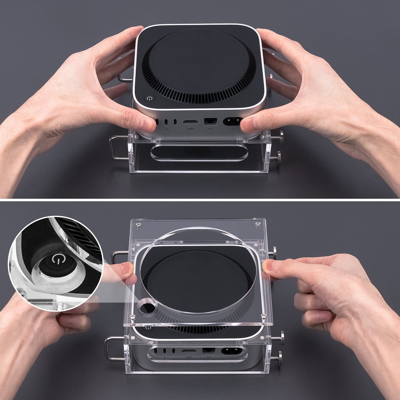 Geekria Computer Chassis Stand, Clear Acrylic Chassis Case, Compatible with Apple 2024 Mac Mini Desktop Computer, Apple 2024 Mac Mini M4 / 2024 Mac Mini M4 Pro Stand - Accessories (Transparent)