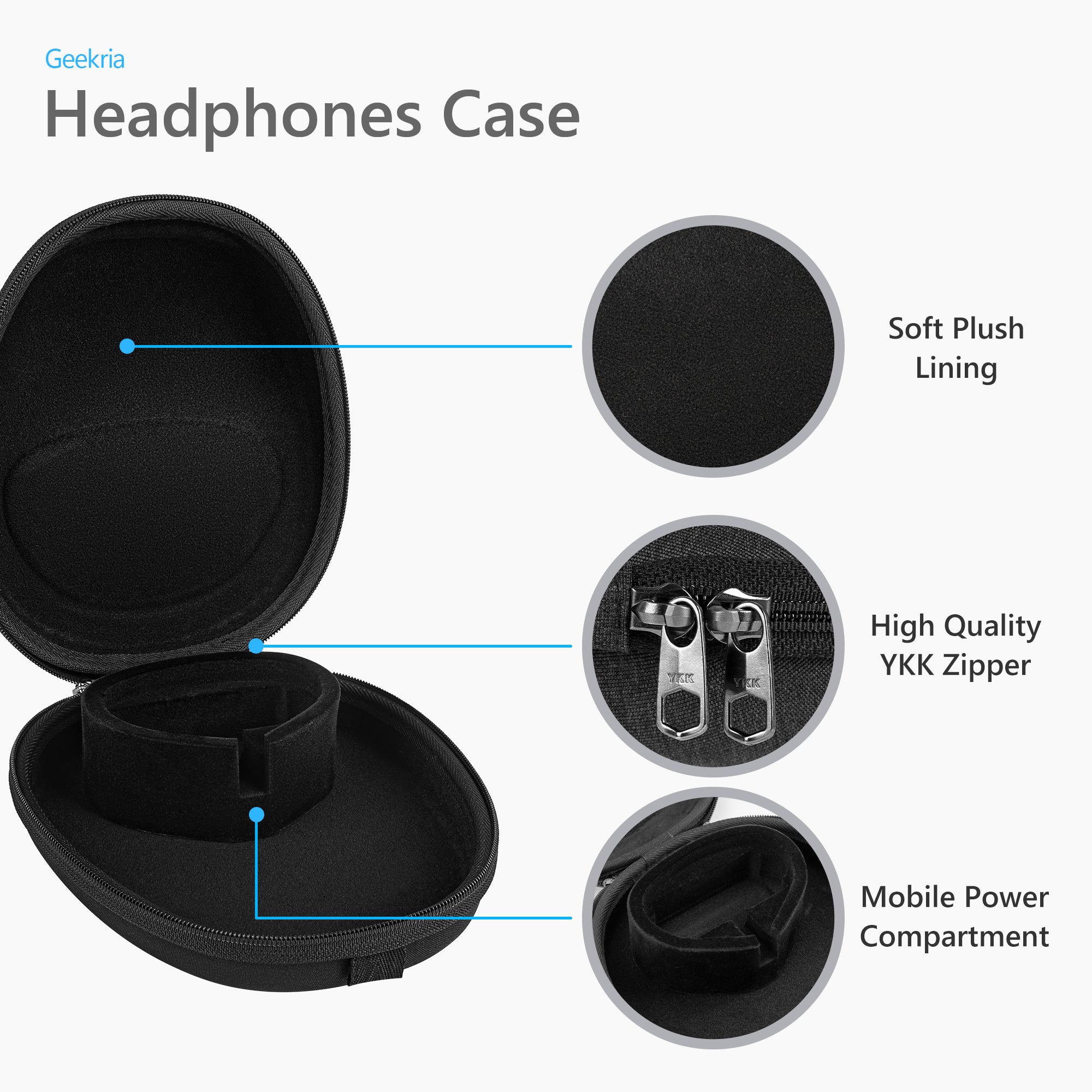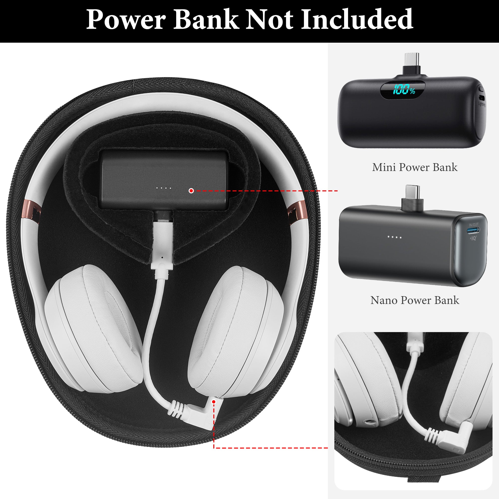 Geekria Elite Charging Headphones Case Compatible with Beats Solo 4, Studio Pro, Sony WH-H800 and More, Replacement Hard Shell Travel Carrying Bag (Black) Without Power Bank