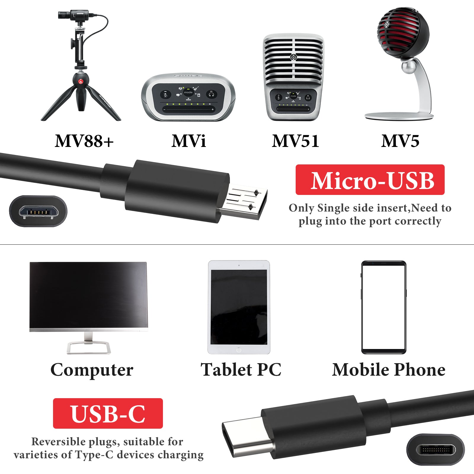 - Compatible with Shure MV 7, MV 88+, MV 5, MV 51, MVi cable.
