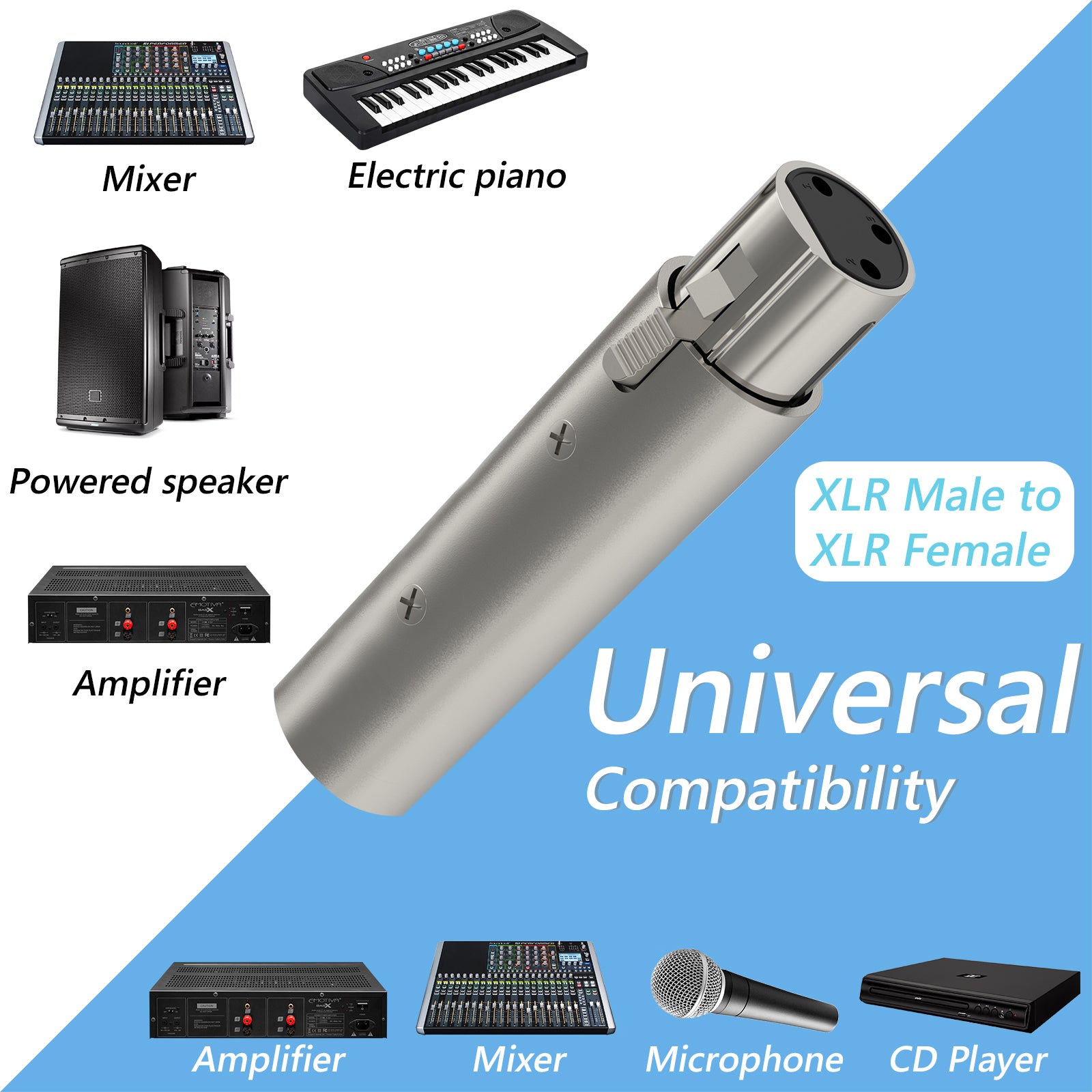 - Package includes: 2 x microphones adapter with XLR Male to XLR Female jack.
