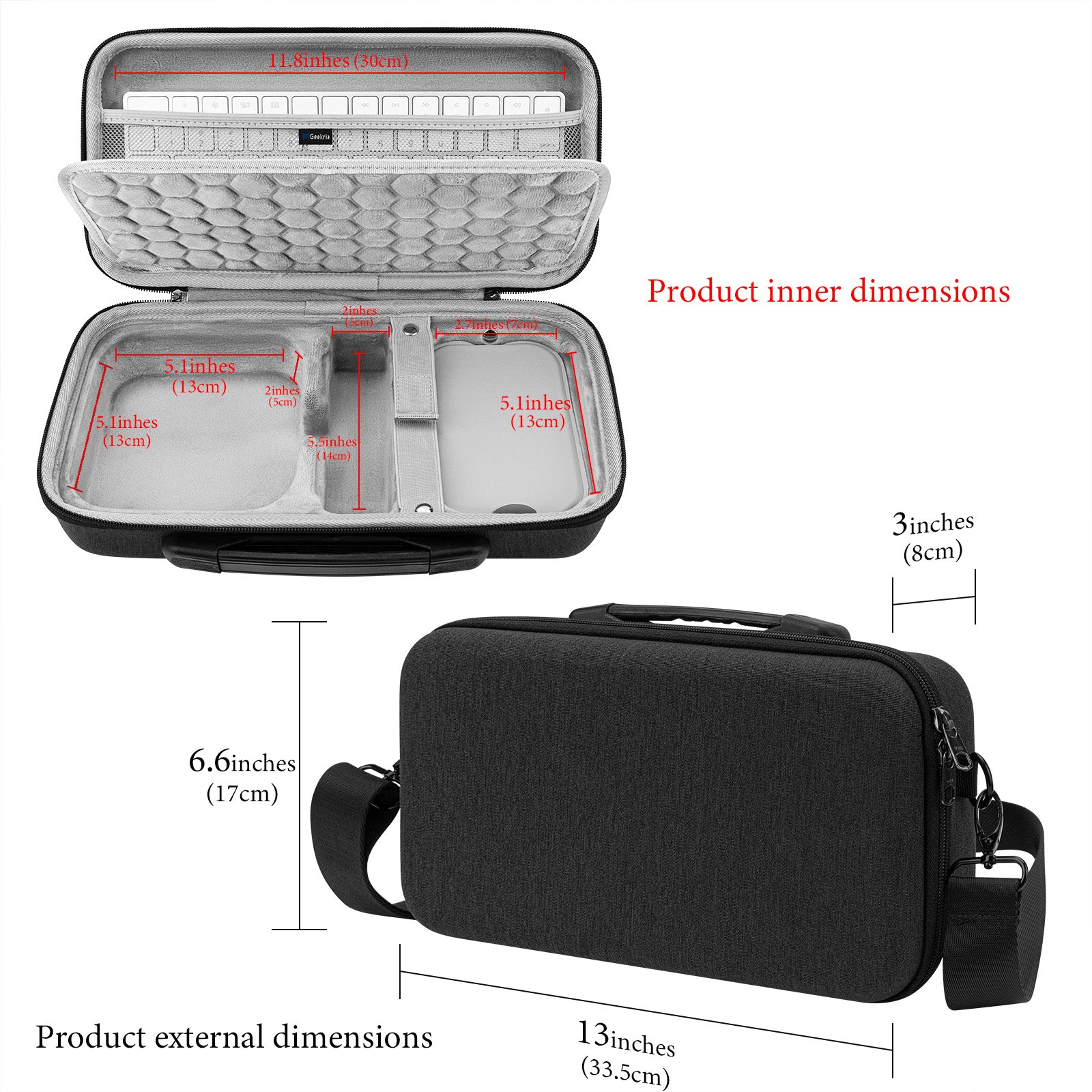 • A zippered interior mesh pocket provides convenient storage for cables, cords, magic keyboard, and other accessories, while an expanded side area can store a Magic Mouse, Magic Trackpad, charger, and more accessories for the 2024 Mac Mini Desktop Computer.