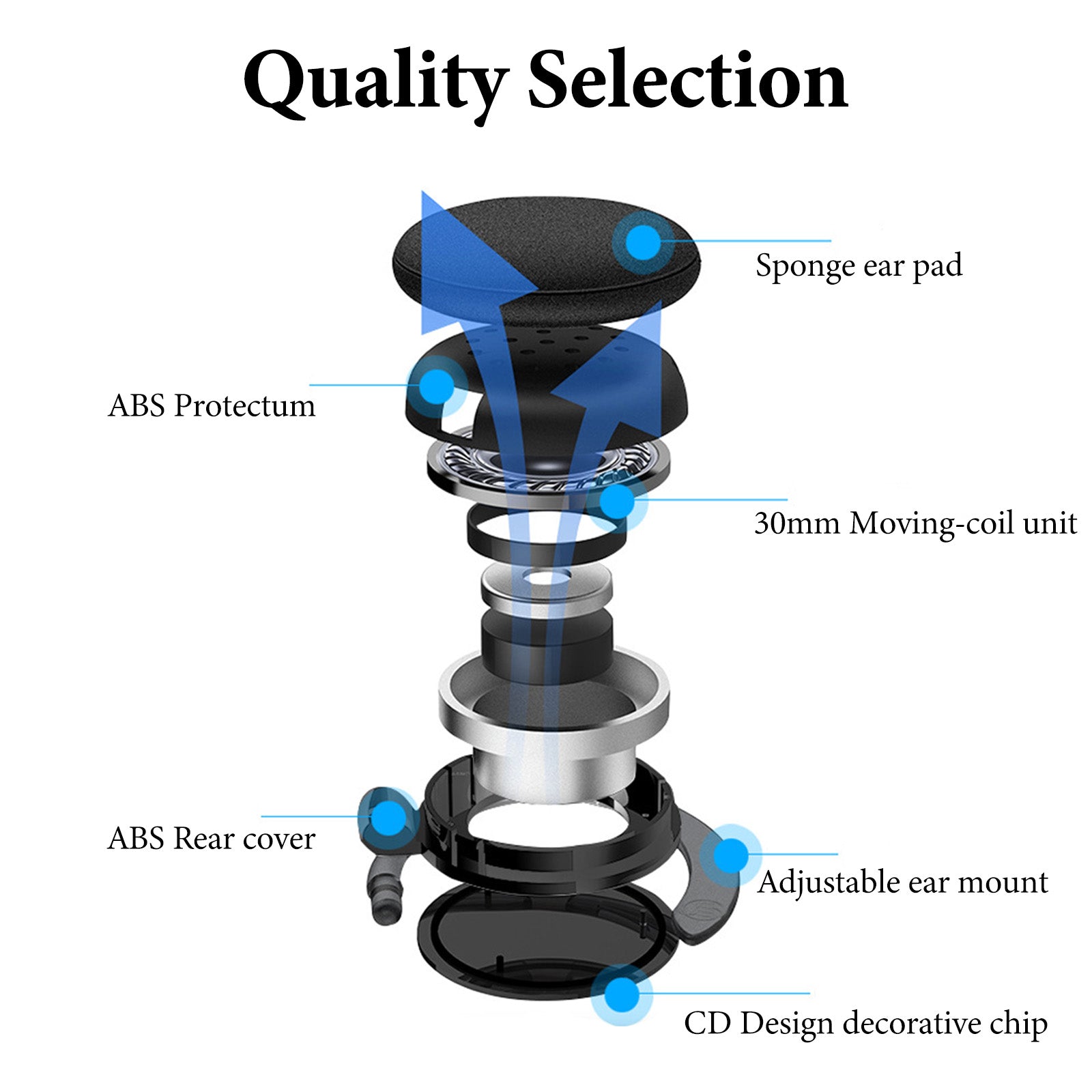 - The surface of the earphones is covered with sponge. Does not hurt the ears, soft and comfortable.